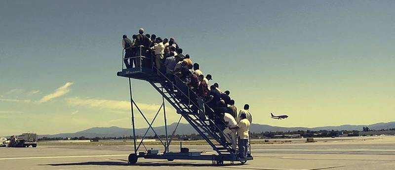 Το βασικό σκηνικό είναι ένα αεροδρόμιο. Ένα πλήθος ανθρώπων κινείται υπομονετικά προς μια σκάλα επιβίβασης αεροσκάφους. Σχηματίζει μια ουρά, ενώ στο βάθος διακρίνουμε αεροπλάνα που απογειώνονται και προσγειώνονται. Σταδιακά, η σκάλα γεμίζει από άντρες και γυναίκες μετανάστες, οι οποίοι στριμώχνονται για να κάνουν χώρο σε αυτούς που ανεβαίνουν. Τα πρόσωπα των ανθρώπων αντανακλούν τη λαχτάρα τους για την εκπλήρωση μιας αξιοπρεπούς ζωής χωρίς διαχωρισμούς και πολιτισμικούς ξεριζωμούς. Η κάμερα σιγά σιγά περιστρέφεται γύρω από τη σκάλα και αποκαλύπτει ότι δεν προσδένεται σε κάποιο αεροσκάφος. Ποιος είναι ο προορισμός αυτής της πτήσης; Ο τίτλος του έργου αναφέρεται στην ιταλική ονομασία των προσωρινών καταυλισμών όπου καταλήγουν οι παράνομοι πρόσφυγες που καταφθάνουν στις ιταλικές ακτές σε εβδομαδιαία βάση.