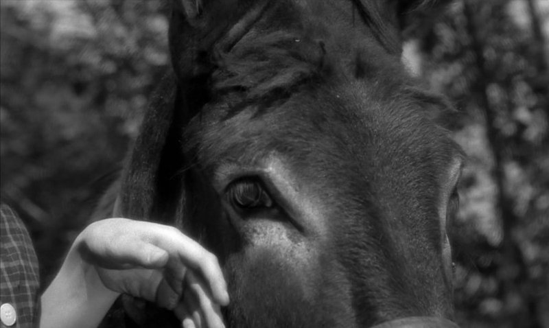 Ο Balthazar είναι το “κλοτσοσκούφι”, το θύμα. O καθένας από τους αφέντες του ενσαρκώνει ένα ελάττωμα της ανθρωπότητας και με κάθε έναν από τους αφέντες του, ο Balthazar θα υποφέρει έναν διαφορετικό πόνο. Αυτό που σκέφτεται, κανείς δεν το γνωρίζει. Αλλά έχει το μάτι ενός δικαστή. Η γαλήνια ζωή του αντιβαίνει στη ταραχώδη ύπαρξη των ανθρώπων. Τελικά πεθαίνει, επειδή φέρει την αμαρτία τους: τον χρυσό που του φόρτωσαν λαθρέμποροι στο δρόμο τους προς τα ισπανικά σύνορα.