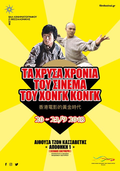 Απίστευτες σκηνές δράσης, συγκλονιστικές μάχες πολεμικών τεχνών που καθηλώνουν από το πρώτο μέχρι το τελευταίο λεπτό, γερές δόσεις χιούμορ: όλα θα τα δούμε στο απολαυστικό αφιέρωμα «Τα χρυσά χρόνια του σινεμά του Χονγκ Κονγκ» που διοργανώνει για τέταρτη χρονιά το Hong Kong Economic and Trade Office in Brussels σε συνεργασία με το Φεστιβάλ Κινηματογράφου Θεσσαλονίκης.