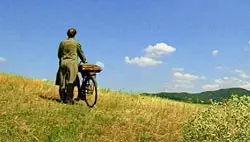 A lesson by Kiarostami on his art could well be a documentary. But again, it wouldn’t be what one would expect. The film consists of an 83-minute soliloquy in front of a camera mounted on his dashboard as he drives through the countryside. Using his film "Ten" as an example, he analyses his theory about cinema in 10 chapters, going from his preference in cameras and the shaping of characters to directing. He is addressing himself to us exclusively, in a very personal tone, as if he’s talking to himself. And that is the beauty of this film: Kiarostami, the camera, and a little free time.