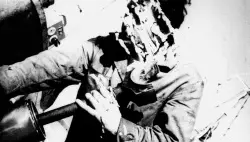 "Commissioned by Channel 4, this great version of Artwar builds from performances with paper masks and implements and various sequences of gunfire. Jeff Keen originally hoped that the several short, punchy and well-composed sections contained within could be shown on television as isolated parts and without announcement. However, Channel 4 didn’t agree".