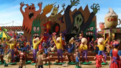 Cowboy and Indian have come up with a brilliant gift idea for Horse’s birthday, but their plan backfires and ends up in a complete disaster: they made a tiny mistake ordering fifty million bricks instead of the fifty needed, crushing their friend’s rooftop. This unfortunate event triggers off a series of wacky, often hallucinatory, adventures, in which the trio journeys to the center of the earth, wanders across icy tundra and discovers a strange aquatic world inhabited by oddball beings with pointed heads.