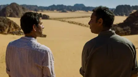 Algeria, 1994, in the midst of the civil war. A road-trip drama that follows two lifelong friends as they head to the Sahara desert in search of the titular terrorist, gradually facing mental breakdown and exhaustion. Reality and fantasy intertwine on the duo’s journey, which is as much metaphorical and emotional as literal, depicting the fragile inner state of two men cruelly accustomed to a life of constant threat, lurking paranoia and palpable terror. An absurdist western, full of striking symbolisms and pinches of surrealism, that reflects upon the corrosive power of war.