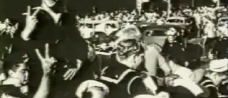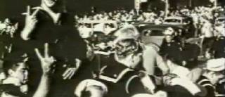 A collage of pictures that are absolutely American, absolutely symbolic. The end of a war, the epidemic-like spread of a mentality through images. Only here they’re overturned, cut up, altered. What you feel and what you see don’t go hand in hand.
