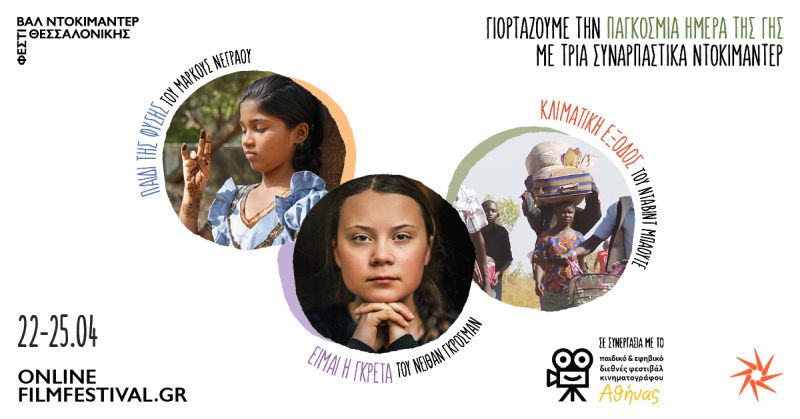 Τρία ντοκιμαντέρ που θα μας μείνουν αξέχαστα, φέρνει στις οθόνες μας το 23ο Φεστιβάλ Ντοκιμαντέρ Θεσσαλονίκης σε συνεργασία με το Παιδικό και Εφηβικό Διεθνές Φεστιβάλ Κινηματογράφου της Αθήνας σε ένα αφιέρωμα με αφορμή την Παγκόσμια Ημέρα της Γης (22 Απριλίου).