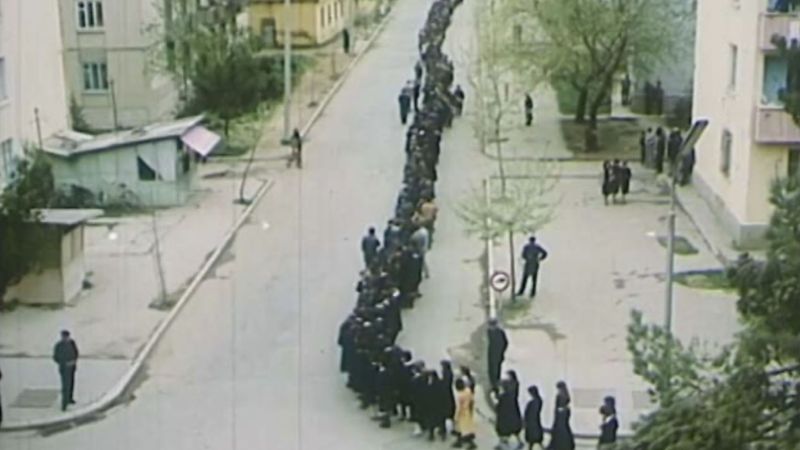 Interregnum by Adrian Paci assembles fragments extracted from videos of official state archives and national television broadcasts documenting the funerals of communist dictators of different nationalities and eras. The grainy images show endless rows of people moving in unison, seemingly without a purpose, their faces laden with expressions of grief. Shifting from close-ups to wider views of the masses, we become witnesses of a crescendo where the manipulation of these masses and the depersonalization of individual identity become increasingly evident. The dissolution of the boundaries between private and public life, intrinsic to dictatorships, transforms individuals into members of a “political body,” that thinks and acts in uniformity with the greater action imposed by the regime’s ideology. The film investigates the nature of this political body, ranging from Asia to Europe and covering almost the entirety of the twentieth century from Lenin’s death to that of the Albanian dictator, Enver Hoxha.